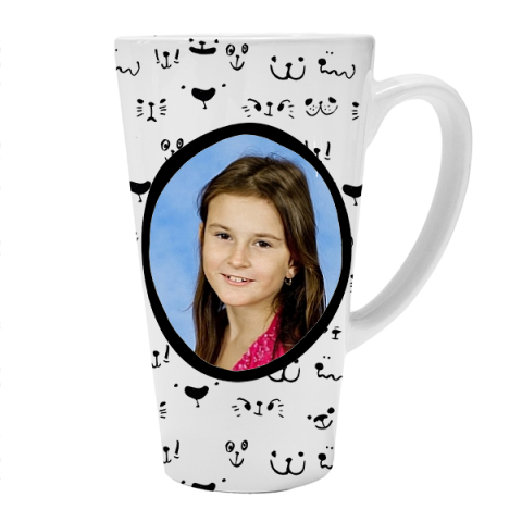 Velký keramický latte hrnek, s hezkým čumáčkovým motivem kde můžete vložit fotografie z obou stran za stejnou cenu. Hrnek průměr 62-92 / výška 154 ...