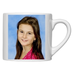 Elegantní malý bílý keramický hrnek, je oblíbený jako dětský hrnek a mezi dospělými díky tvaru a rozměru také jako espresso hrnek na kávu. Hrnek je nízký a širší a má tak větší stabilitu, díky tomu je odolnější proti převržení dětského nápoje nebo horké kávy.